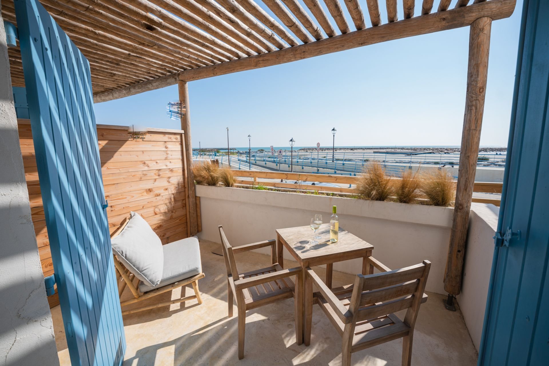 Nos 5 chambres Vue mer de 14 à 17 m² sont situées au 1er étage (sans ascenseur) avec une terrasse privée ouverte.