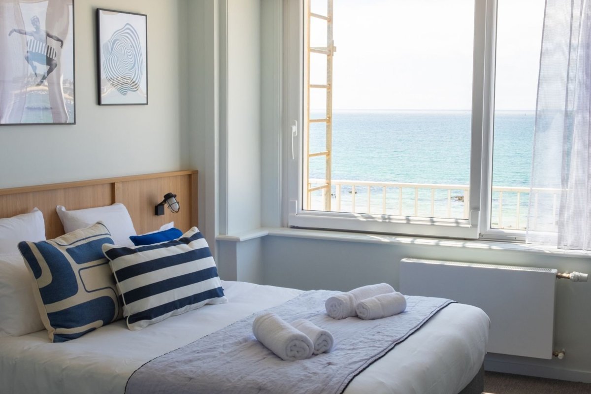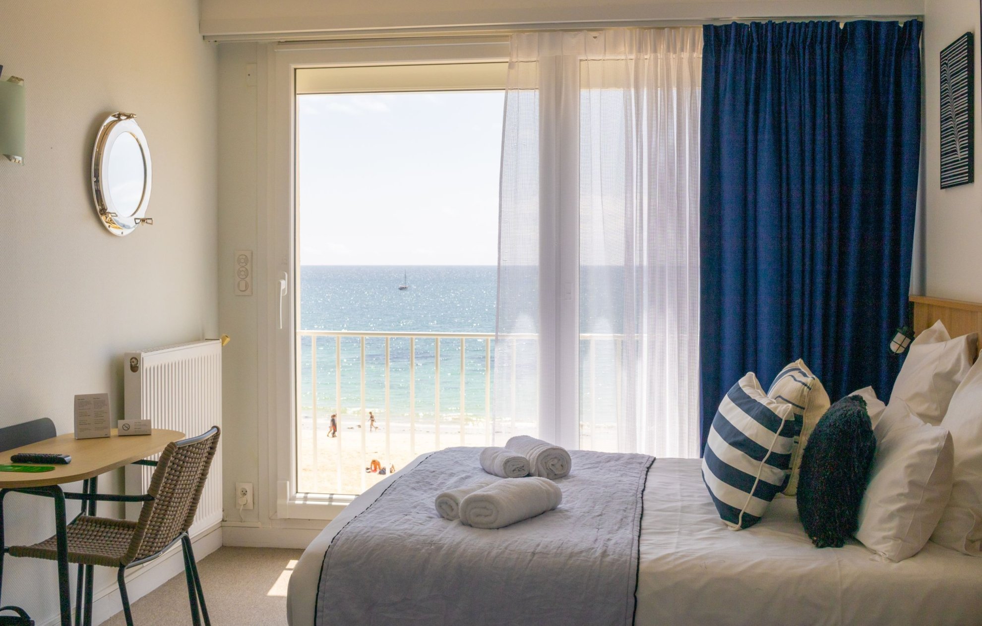 Nos 5 chambres doubles vue mer de 16 à 24 m² sont réparties sur les différents étages (sans ascenseur) de notre hôtel.