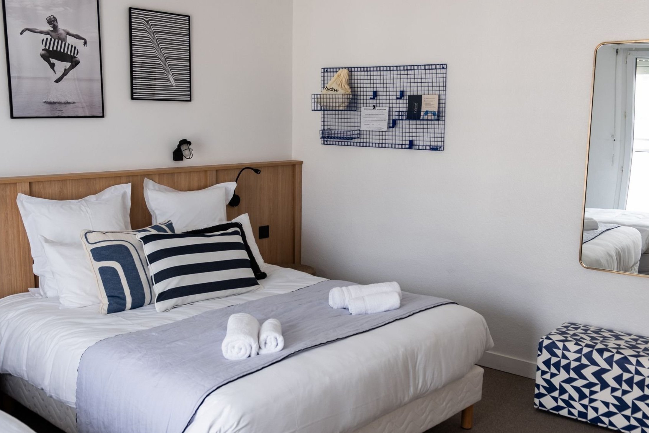 Nos 4 chambres triples vue mer de 21 à 25m² sont situées sur les différents étages (sans ascenseur) de notre hôtel.